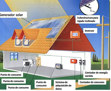 Sistema interconectado a la red: En el sistema interconectado, el producido de los paneles solares se inyecta directamente a la red eléctrica local mediante un inversor sincrónico de alta eficiencia sin utilizar baterías.